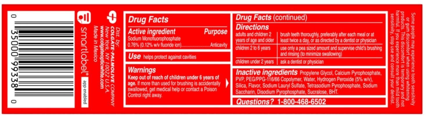 Experience visibly whiter teeth in 3 days* with Colgate Optic White Pro Series Stain Prevention Hydrogen Peroxide Toothpaste. Use this 3 pack of teeth whitening toothpaste with a 5% hydrogen peroxide-based formula to deeply whiten beyond surface stains. Colgate Optic White Pro Series Stain Prevention Toothpaste effectively removes tea, coffee, and wine stains so you can achieve a white smile. Colgate Optic White Pro Series Hydrogen Peroxide Toothpaste is a patented whitening toothpaste with 5% hydrogen peroxide that deeply whitens and is enamel-safe. This teeth whitening toothpaste is also an anticavity fluoride toothpaste to help prevent cavities. For whitening that works, choose the Colgate Optic White Pro Series Stain Prevention Hydrogen Peroxide Toothpaste. Reveal a smile that dazzles with Colgate Optic White Pro Series Toothpaste. Use this expert level whitening toothpaste for a vibrant glow and visibly whiter teeth*. Colgate Optic White Pro Series Hydrogen Peroxide Toothpaste is a gluten free, sugar free, and vegan toothpaste that has a refreshing mint toothpaste flavor. Unlock a bright, radiant smile with the Colgate Optic White Pro Series Stain Prevention Hydrogen Peroxide Toothpaste.  *when used as directed